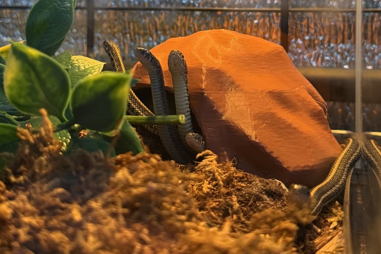 If you are interested in getting into garter snakes, one of the best beginner species is the Plains Garter Snake. This was actually our first species (since we cannot legally own Eastern Garter Snakes). They are known for having a variety of morphs, being easy to handle, having great personalities, and being absolute pigs!